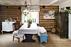 Inne i har de valgt en lys fargepalett, noe som gjør at de antikke møblene kommer godt frem. En av tømmerveggene har de latt være synlig. Det gir en lun stemning. Stuen er stor og åpen, med sofakrok og spisestue i ett. Det rustikke langbordet er et naturlig samlingspunkt for familien. Her koser de seg med lange måltider og spillkvelder. De flotte spisestuestolene har bestefaren til Lage håndskåret.