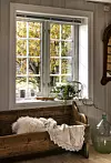 Gårdens ytre er de begge fornøyde med, og vinduene de har satt inn er eksakte kopier av de originale fra tidlig 1800-tall. På taket har de selv lagt skifer, stein for stein, en tung og langdryg jobb. Men resultatet ble så flott at de nå ønsker seg skifertak på de andre bygningene på gården også.