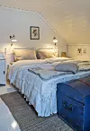 - Slik fikk vi bevart den gamle senga, samtidig som det ble komfortabelt å sove i den, sier Tonje. I fotenden av senga står en sjarmerende gammel kiste som alltid har vært i familiens eie, og den har de ikke hjerte til å svinge malerpenselen over.