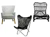 MODERNE LENESTOLER: Deadgood Love chair fra ambientliving.dk, Butterfly sammenleggbar stol fra Nordal (3700,-) og lav kurvstol fra House Doctor (2625,-).Foto: Produsentene