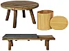 SISTE NYTT TIL STUA: Grovt, rundt trevord fra House Doctor (4625,-), bordet Log i lakkert eik med lokk fra Swedese (3389,-) og Trebenk fra House Doctor (6000,-).Foto: Produsentene