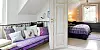 En nydelig sofa på kjøkkenet er et eksempel. Den er trukket om i turkise og rosa stoffer, og treverket er malt gult.