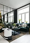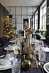 I den klassiske bygårdsleiligheten er en svart-hvit base kjærlig og stilsikkert julepyntet med glitrende detaljer og vintergrønt.