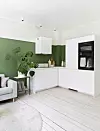 – Grønt er ofte en vanskelig farge. Det gjelder å finne en nyanse uten for mye blått eller gult i, så jeg anbefaler alltid kundene mine å male et par alternativer med prøvemaling, slik at de får sett hvordan det blir, sier interiørarkitekten.