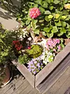 - Da vi flyttet hit for noen år siden, var noe av det første vi gjorde å legge ekstra oljepapp på det nesten 30 meter lange terrassegulvet for å sikre oss mot lekkasje. Deretter la vi tregulv over og bygde opp blomsterbed i mange store og små trekasser, sier huseier Trond Kinn, butikksjef i den tradisjonsrike Oslo-forretningen Norway Designs. Eierne delte opp terrassearealet, møblerte i hvile- og spisesoner og arrangerte avskjerminger mot omgivelsene. Dermed oppleves heller ikke takhagen som lang eller kjedelig i formen.