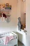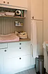 Knottene er fra en jernvarehandel. Familien har også fått montert en liten servant på for å gjøre barnestellet litt enklere.