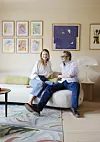 Det er Elisabeth som er interiørdesigneren i familien, men også Kristoffer er sterkt engasjert i hvordan hjemmet ser ut. Denne sofaen fra Furninova passerte nåløyet hos begge to. Over henger en gruppe med bilder av datteren Solveig, sammen med et større bilde fra Hay. Teppet er fra A. Huseby.Yvonne Wilhelmsen