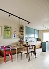 – Vi liker å trekke alle møbler til side, gjøre yoga, bygge togbane eller bare danse litt rundt. Hjemmet har blitt til underveis. Plutselig kommer det en ny idé og et nytt møbel eller en lampe flytter inn. Da er det greit at det er litt fleksibelt!