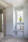 Gulv: Fjellfuru trebord fra Skjåk Trelast. De malte er er i Fargen Varmgrå.