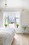 På soverommene i andre etasje har Elin valgt nostalgisk tapet, og det er hun godt fornøyd med.