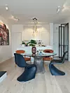 - Hvis du skal ha en farge eller et materiale som skiller seg veldig ut, så bør du ha det tre steder. Da går det fra å være tilfeldig og forstyrrende til å bli et designelement, sier Solbakken.