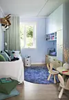 Runde former bryter opp det smale, rektangulære rommet og skaper en mykere og mer dynamisk følelse. Det er også enklere og tryggere for små kropper å bevege seg blant runde former.