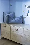 – For å gi garderobeløsningen litt liv valgte jeg å ta opp materialet fra gulvet på den nederste skufferekken.