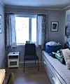 Rommet ble brukt som gjesterom, det var lite, men med et stort vindu som gjorde møbleringen utfordrende.
