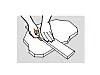 Skal du lage en kurve, streker du først opp med kritt eller rissenål. Så banker du av fra kanten med en kulehammer. Stopp et lite stykke fra streken og finhugg med en skiferkniv.