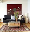 Koffert på hjul. En stålkoffert kjøpt i Bangkok forsynt med hjul til bein er blitt et originalt og brukbart sofabord i en loftsleilighet på Grünerløkka i Oslo.