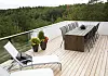 Til terrassen. Kjøp ekstra terrasseplank og lag et bord så langt og så bredt du vil. Bordet er beiset og holder seg godt i vær og vind.