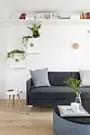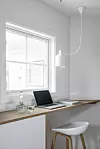 Slike løsninger skaper sammenheng og ro, og bidrar til å definere de ulike sonene: tv-titting her, kontorarbeid der. Nå er det blitt plass til mer oppbevaring, samtidig som rommet er ryddigere og freshere.