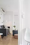 Byttet ut løse møbler med integrerte oppbevaringsløsninger.