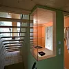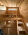 Huset ligger ikke langt fra en innsjø, og en sauna er bygget på husets østside. Saunaen er enkel og asketisk, med vinduer mot naturen utenfor.