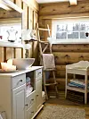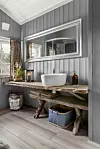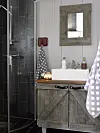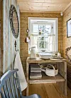 Kombiner nytt og gammelt: Gi hyttebadet personlighet ved å mikse moderne innslag med originale eller rustikke detaljer. En ny servant i naturstein kan fint kombineres med et gammelt speil. Let etter bruktfunn på det lokale loppemarkedet, eller sjekk ut «gis bort» på Finn. Utvid søkeradaren til steder som ligger på vei til hytta. Her kan du virkelig finne gull!