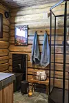 Varmt vann: Familien som eier denne hytta har innlagt vann og strøm, men ingen varmtvannstank. Den lille vedovnen på badet sørger for at de i det minste har en kjele med varmt vann til enhver tid.Helge Eek