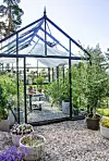 – Vi flyttet dukkestuen ned, flatet ut en stor skråning og fikk drivhuset på plass. Så hugger vi nå en del frukttrær, som dessverre begynner å bli litt gamle. De er over hundre år noen av dem. Hagen er helt fantastisk for generasjonsboligen vår. Vi kan trekke oss helt unna hverandre, eller møtes og spise lunsj sammen i enten den øvre delen av hagen, eller den nederste. Det er sol overalt, det er jo en grunn til at det kalles Solveien.