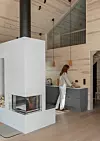 – Også nede i allrommet er det luftig, med nesten fem meters takhøyde på det meste. Det, sammen med de store vinduspartiene, gjør at rommet oppleves som større enn det kvadratmeterne tilsier, forklarer Myrtel.