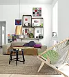 KLASSISK MED GJENBRUK: Brukte pallekarmer fås i 2 str., 120 x 80 og 60 x 80 cm, h 20 cm, og koster henholdsvis 70 og 50 kroner for brukte, eller kr 100 og 70 for nye, palledistributoren.no. Røde hylleknekter, Ekby Stödis, kr 10 pr. stk., Ikea. Sofaen Plastics modular seating system er designet af Piero Lissoni fror Kartell. Her er det brukt to moduler, ca. kr 9200 pr. modul, holedesign.com. Cirkelstolen, designet av Hans J. Wegner, i såpevasket massiv ask, ca. kr 40 000, Robert Tandberg. Et rimeligere alternativ kan være Länstol i oljet ask, kr 16 700, fra Norrgavel. Brettbord, Trollsta, kr 598, Ikea. Lampeskjerm til taklampe, Gnejs, ø 35 cm x h 33 cm, kr 125, Ikea. Gulvteppet Tårnby, 250 x 180 cm, kr 695, Ikea. Pute formet som sky, Cloud, 80 cm, kr 531, donnawilson.com. Rosa pute med knapp, kr 599, hayshop.no. Kelimteppe i sofa, ca. kr 3000, Hay. Hvert teppe er unikt, så prisen vil variere. Nips og bilder i hylla: Malerier med flisemotiv på lerret, fra kr 4900, arttiles.dk. Babushka vaser, stor, kr 679, liten, kr 366, stillebenshop.com.