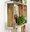REOL AV GAMLE PALLEKARMER: Pallekarmer er rammer av tre. De settes oppå vanlige paller når man skal sende ting som ikke kan stables på vanlig måte. Sett karmene i den formen du ønsker og fest med hylleknekter. Skru så reolen opp på veggen, bruk store skruer. Du kan eventuelt henge reolen opp i såkalte patentbånd, som du får hos for eksempel Biltema.Foto: Linnea Press Lisbeth Hjort/Linnea Press