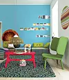 Her har vi blandet kalde og varme farger og valgt møbler med særpreg.