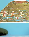 LAG KUL LAMPE: Du trenger et lampeskjelett av wire, ca. kr 530, House Doctor/Tina Sand, et olivengrønt garn og pastellfargede perler, fås hos Panduro Hobby. Start med å binde fast garnet øverst på lampen og surr det halvveis ned på stativet. Træ perler tett i tett på tråden og surr cirka en fjerdedel til. Træ nå færre perler på tråden og surr det siste stykket. Bind fast garnet i enden.Foto: Linnea Press Lisbeth Hjort/Linnea Press