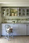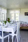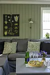 1. Malte panelvegger i lyse farger. Flere av fargene er funnet i huset.