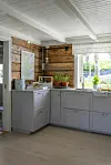 2. La gjerne en tømmervegg stå ubehandlet, som en rustikk kontrast til de malte flatene.