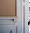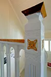 Veggene var opprinnelig malt med oljemaling, men siden fornyet med vannbasert maling. Denne heftet dårlig, og gammel maling på alt treverk ble fjernet med malingsfjerner og alle flater skrapt, slipt, grunnet, fuget og malt med to strøk oljemaling.