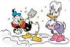 Det er vinter og masse snø i Andeby. I bildegalleriet over, kan du ta en titt på hva Donald, Mikke, Langbein og resten av gjengen gjør når det er vinter.