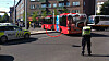 Her står bussen bom fast i firkantrundkjøring
