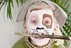2) Mal hvite buer over øynene, og mal munnen og hele området rundt hvitt.