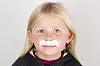 2) Mal et hvitt og firkantet område til tenner på underleppen og ned mot haken. Mal nesetippen rosa.
