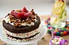 Sjokoladekake med kremfyll, jordbær og popcorn. Du trenger: