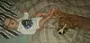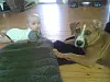 Det ser ut til at de er like forskrekket over å bil fotografert, her de ligger langstrakt på gulvet og betrakter verden.