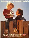 KLASSIKER: Melkesjokoladen fra Freia har fulgt oss i generasjoner. Selv om sjokoladen har den samme gode smaken, har utseendet forandret seg litt gjennom årene. Dette er en annonse fra 1984.