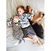 Enkelte ville kanskje vært skeptiske til å la to små barn sove så tett inntil en hund, men Jessica stoler på at Theo passer godt på.