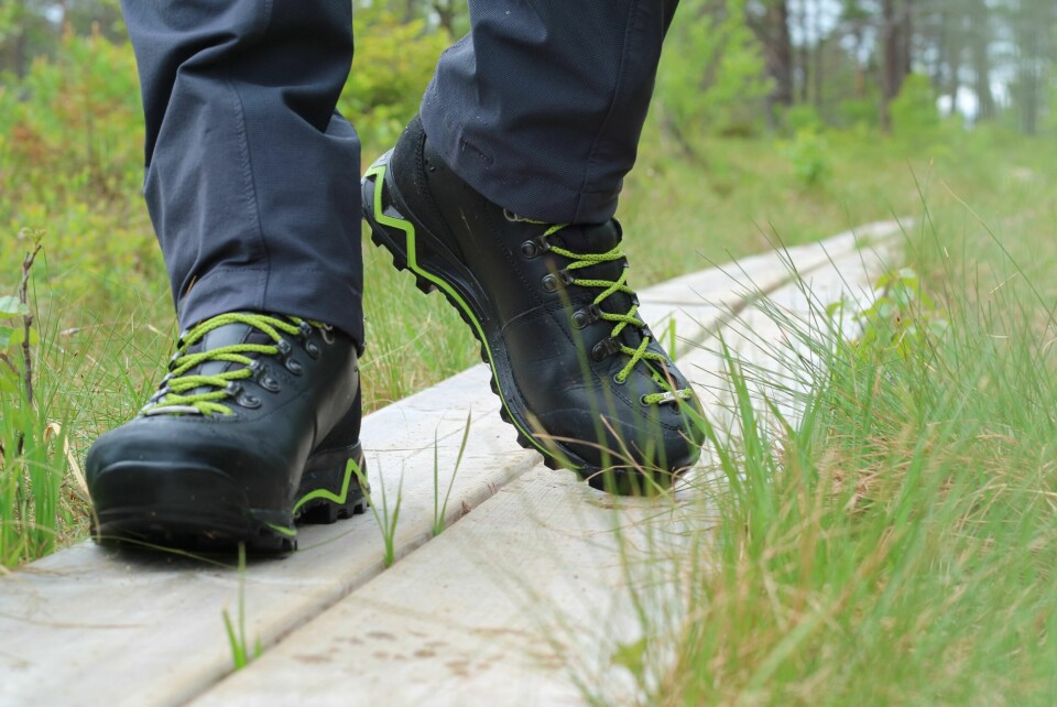 Eller jaktstøvler om du vil: Lærstøvler som går godt opp på leggen, er et godt valg om du skal gå mye i myr og vått terreng. De letteste modellene har lite ankelstøtte og beskytter ikke foten i særlig grad.