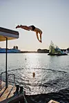 OSLO FJORD SAUNA: På fjorden i hovedstaden, mellom Operahuset og Sørenga brygge, finner du de flytende badstuflåtene og badestampen til Oslo Fjord Sauna. Nyt den koselige varmen fra badstuene, kjøl deg ned i fjorden, eller bare nyt det varme vannet i badekaret mens du nyter utsikten over fjorden og øyene. Sørenga Badstuflåte har per i dag fire badstuer med en kapasitet på 12 til 16 hver. Ta med håndkle, badedrakt, sandaler (ullsokker anbefales om vinteren) og en flaske vann. Det er garderober i hver badstue og en utendørs dusj med kaldt vann.Becky Zeller/Visit Norway