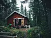 Kjøreturen gikk dypere og dypere inn i den mørke høstskogen, og vi passerte flere hytter langs veien – av typen man kunne leid for noen hundrelapper.