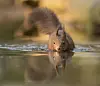NØTTELITEN PÅ SVØMMETUR: I likhet med de fleste pattedyr, kan også ekornet svømme. Vannet er imidlertid ikke noe foretrukket element for den nysgjerrige gnageren med den store halen. Men hvis ytre omstendigheter tvinger ekornet til å legge på svøm, klarer den seg forholdsvis bra.Shutterstock