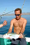 Etter litt e-postutveksling med engelske Lynda Flanner, som driver charterbåten Dorado sammen med sin mann David, har jeg nemlig fått lov til å være med på to fisketurer som fotograferende journalist. Dagen før var jeg sammen med Robert og Joel - far og sønn fra Canada, og for tiden bosatt i London - som hadde chartret hele båten. Resultatet ble tre flotte pilskater og like mange bonitos - en mindre slektning av tunfisken.
