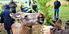 I dag byr elgsenteret på13 elger, alle så tamme og menneskevante at elgguide Bengt Axelsson ikke nøler med å la oss slippe inn i innhegningen og hilse på dem. - Men husk at elgene kommer rett mot deg, formaner han. - De er ikke så nøye med hva de støter på. Dette er jo tross alt skogens konge.