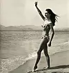 MARILYN MONROE, 1946: Kort tid etter at verdens første bikini var presentert i Frankrike, poserte en 20 år gammel jente på en strand i California. Både klesplagget og jenta sto foran et gigantisk gjennombrudd: Norma Jean, som hun het, skiftet den samme sommeren navn til Marilyn Monroe og skrev under på sin første filmkontrakt. Den gule bikinien skal hun ha laget selv. Bilder som dette, av lettkledde filmstjerner og sexsymboler, bidro til å popularisere og alminneliggjøre bikinien, som i mange vestlige land var forbudt langt ut i 50-årene. Getty Images